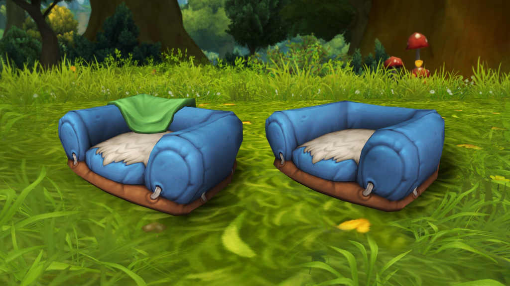 - Adorno cama de colega canino con dos variantes: con y sin manta (WoW moderno)