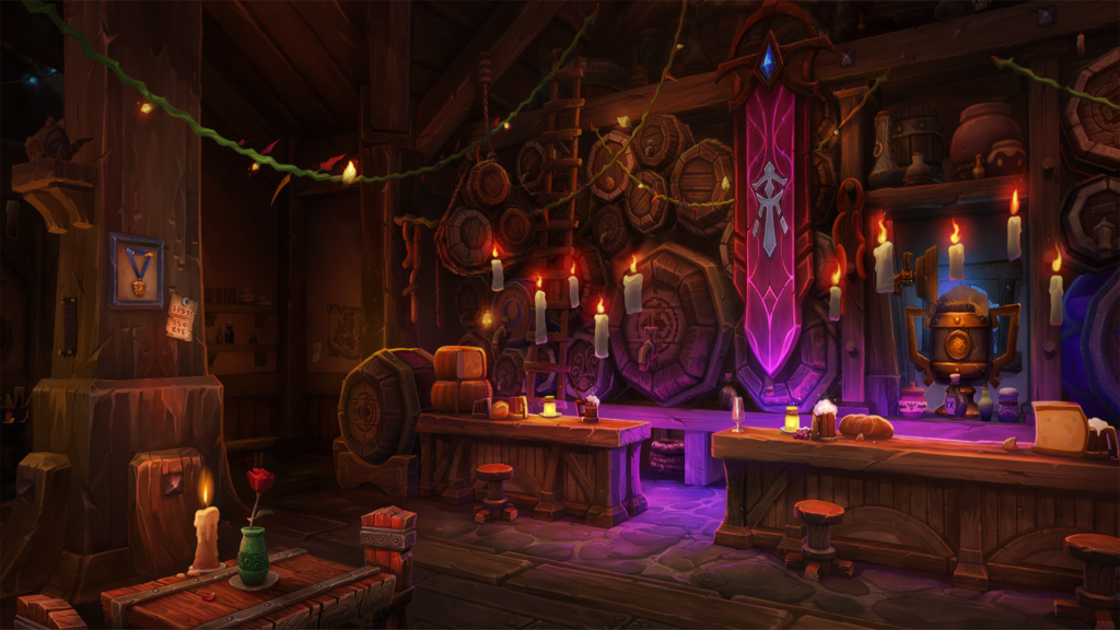 La presentamos por primera vez en el cómic «Estaciones», y ahora la Arcantina se ha convertido en un refugio no del todo secreto para la Horda y Alianza. Entre sus acogedoras paredes, la taberna rebosa vida; la música alegra el aire, las risas resuenan entre los grupos de amigos y se recuerdan con cariño viejas aventuras mientras se comparten bebidas. Si el Vacío es frío y sombrío, la Arcantina es todo lo contrario: una cálida chispa en el corazón de cada parroquiano. Es un lugar donde descansar, socializar y disfrutar del ambiente de una taberna bulliciosa. Ya sea para descansar tras un largo viaje o simplemente para pasar un rato con tus amigos, la Arcantina te ofrece un agradable descanso durante tus aventuras.