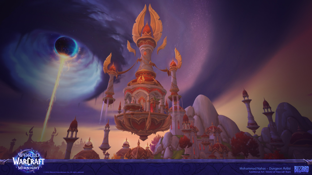 Mientras exploras el arte que encontrarás a continuación, verás que los artistas de World of Warcraft forman una excepcional hermandad de maestros artesanos. Han transformado las tensiones que definen Midnight en un mundo que se siente vivo, forjando nuevas tierras y reformando las antiguas, dando vida a criaturas y personajes con alma, creando encuentros tanto épicos como íntimos y diseñando las interfaces que conectan a los jugadores con este mundo tan especial.