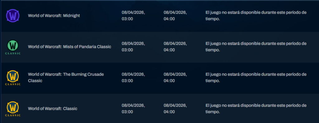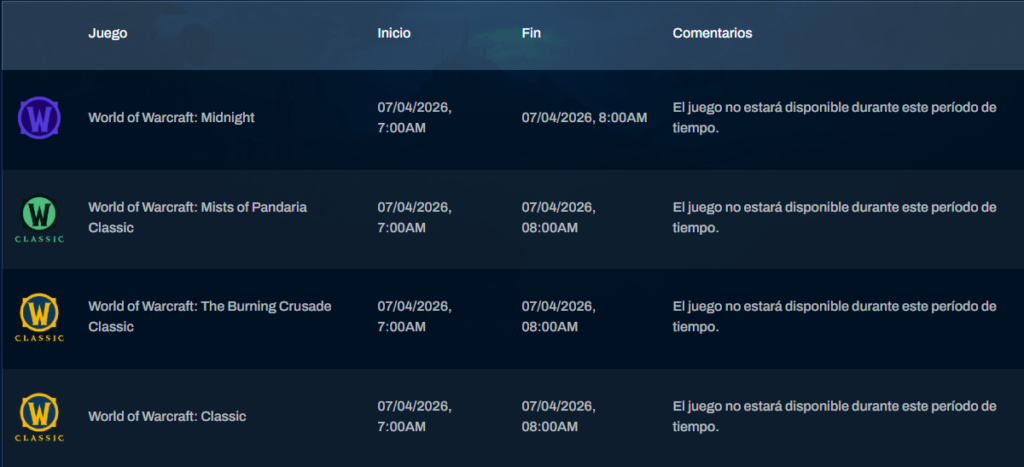 A continuación, os traigo el mantenimiento semanal para Europa y para América. Los Horarios están distribuidos según su zona local.
