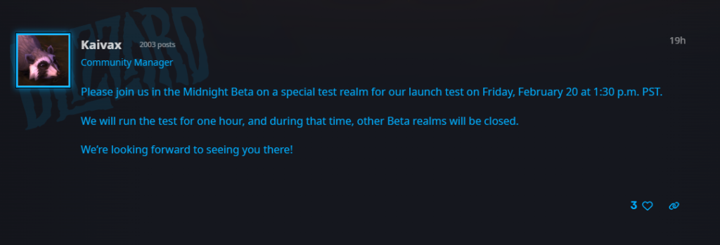 Blizzard ha anunciado un test de lanzamiento especial para la Beta de Midnight, que se llevará a cabo en un reino de pruebas dedicado.