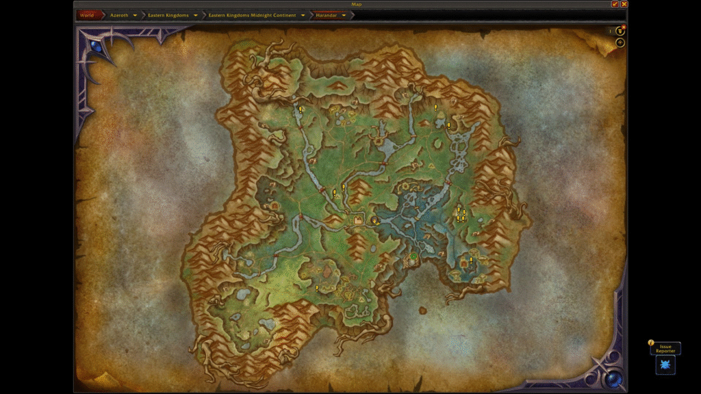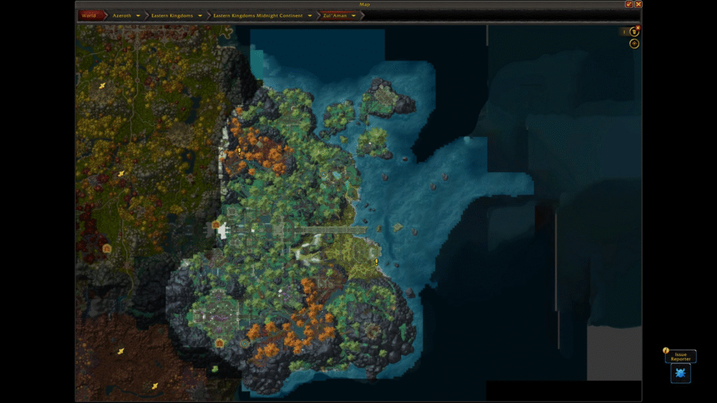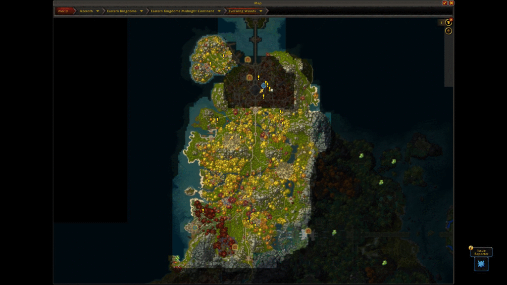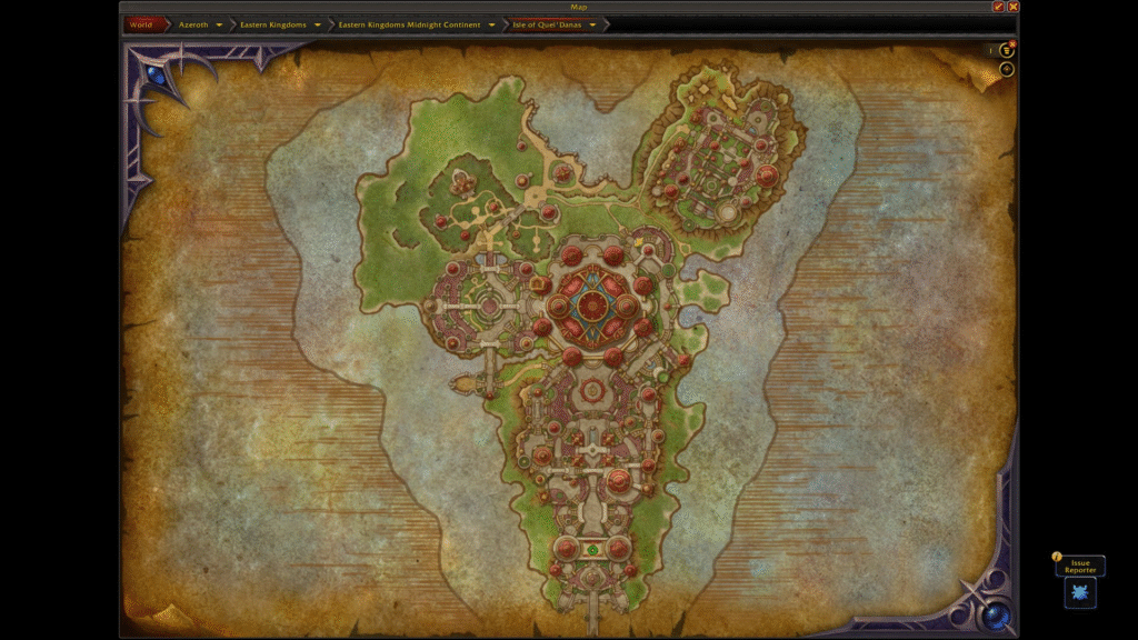 Este es el mapa en desarrollo actual del continente Quel’Thalas en Midnight. Este mapa está conectado en la parte superior del mapa de los Reinos del Este.