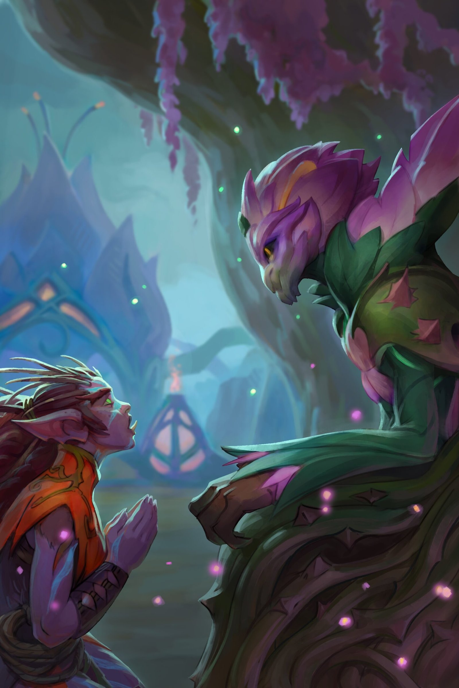 Mientras la semilla de Orweyna echaba raíces en la tierra salvaje de Harandar, Amarakk permaneció siempre a su lado como la firme voz de la razón que la ayudó a contener sus impulsos más salvajes. Amarakk era la fuente de su confianza y un aliado en sus conspiraciones. Y fue así hasta el día en el que Orweyna aprendió a abrir una sendarraíz a un lugar hasta entonces fuera del alcance de los haranir: Azeroth. Tras una sola visita al mundo de la superficie, el lazo que ataba a estos dos compañeros se estrechó para convertirse en mucho más.